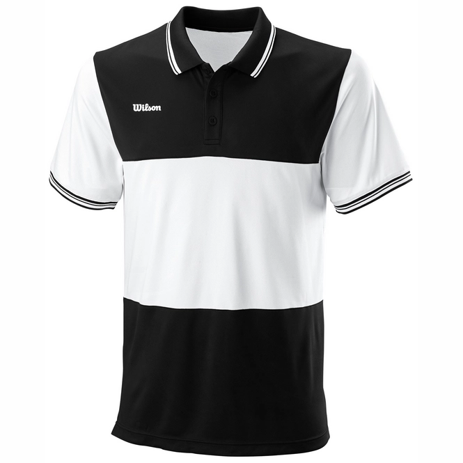 Dieses Polo stammt aus der Team II Serie der Marke Wilson. Sportlich wirkt dieses feuchtigkeitsableitende Poloshirt mit Colorblocking. Darüber hinaus verfügt es über drei klassische Knöpfe und kontrastierende Linien an Kragen und Manschetten. Das Polo ist aus 100 % hochwertigem Polyester gestrickt, das eingestrickte Wilson Logo befindet sich auf der Vorderseite der Brust. Der vorgeformte Saum hat seitliche Schlitze für ultimative Bewegungsfreiheit.